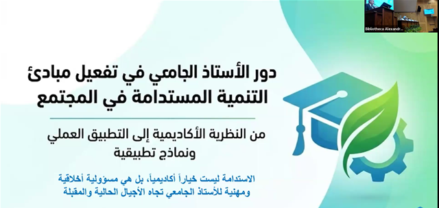 دور الأستاذ الجامعي في تفعيل مبادئ التنمية المستدامة 21 Apr 2026 | Delegates Hall